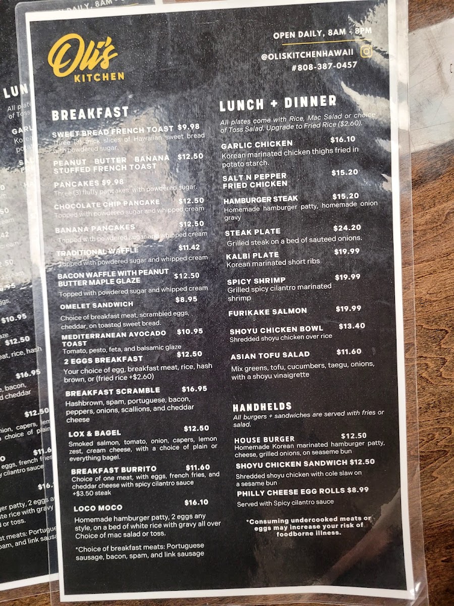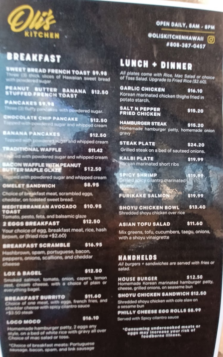 Welcome to Oli's Kitchen, a hidden gem nestled in Honolulu, Hawaii, where local flavors meet warm hospitality. Known for its cozy atmosphere and a menu that caters to every meal of the day, Oli's Kitchen offers standout dishes that delight the senses.